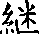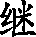 继:繼,金文  (“绝”的简写,即 ,被切成两段的丝线) (二,两截),表示将两截被切断的丝再连接起来。篆文  (糸,完整的丝线) (绝,割断丝线),表示将割断的丝线接起来。造字本义:动词,接续断丝。隶化后楷书 将篆文字形中的 写成 ,将篆文字形中的 写成 。俗体楷书 根据草书字形 ,将正体楷书的两个“丝” 简化成“米” ,使“断丝”的线索完全消失。《汉字简化方案》中的简体楷书“继” ,依据类推简化规则,将正体楷书字形中的“糹” 简化成“纟” 。“断”是将物体截成两段;“绝”是将丝线切成两段;“继”是将断丝相连接;“续”是传承祖业家宝。